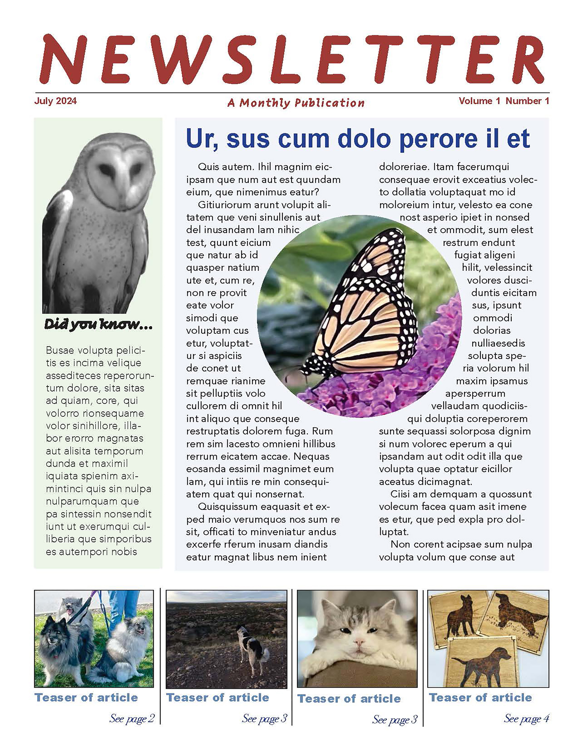 Newsletters can be a wonderful way to introduce the ideas and mission of your company or organization to a new and continuing audience. The overall look and style of this newsletter will convey much to the reader about the personality of the company.